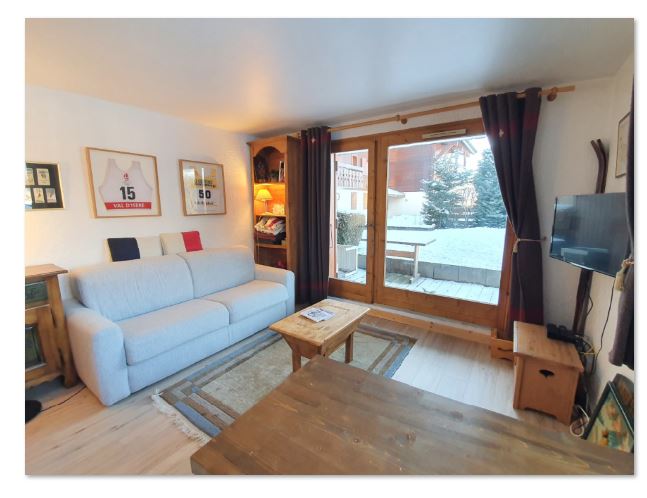 Appartement Studio cabine de 25 m² en rez de jardin, belle exposition. Agréable pour des vacances au calme et près du domaine skiable et du golf. Casier à ski et une place de parking couverte en accessoire.